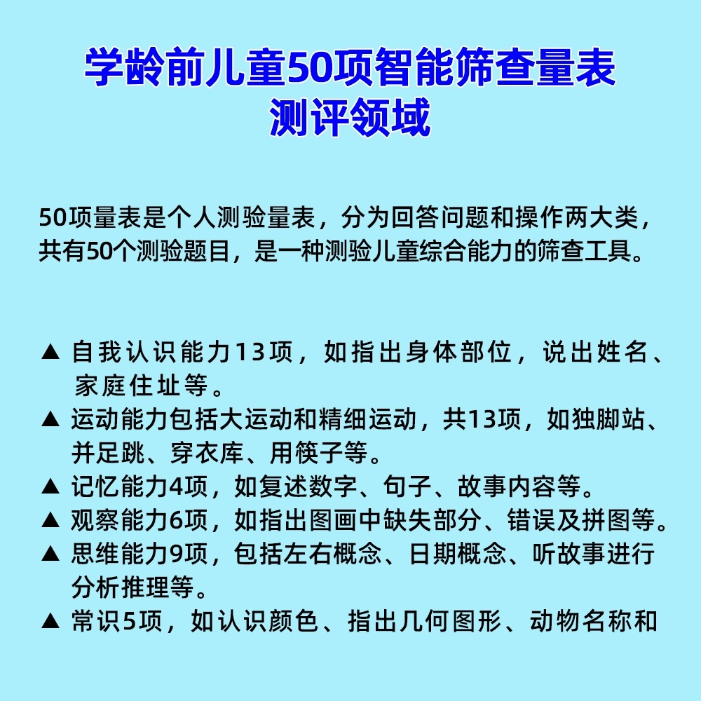 學(xué)齡前兒童50項智能篩查量表工具箱小兒智力發(fā)育篩查